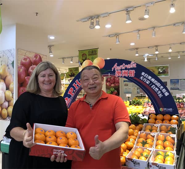 澳洲2PH董事(shì)長(cháng)Bindi與綠(lǜ)葉果業(yè)集團總經理(lǐ)唐紅(hóng)在門(mén)店(diàn)合影(yǐng)