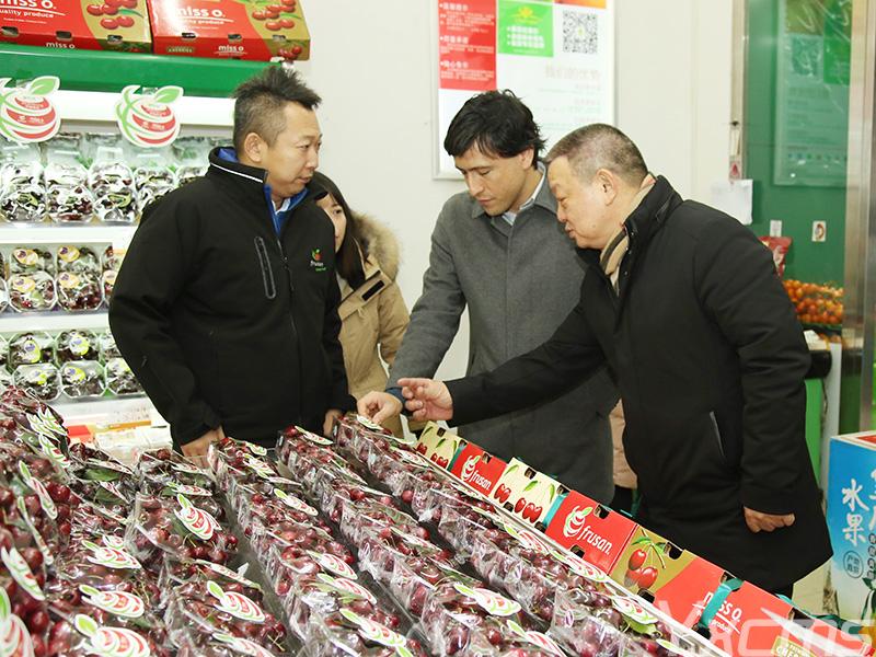 1月(yuè)27日(rì),智利Frusan公司亞洲區(qū)銷售經理(lǐ)Ricardo先生(shēng)、中國(guó)區(qū)代表崔世傑先生(shēng)一♠(yī)行(xíng)莅臨綠(lǜ)葉水(shuǐ)果進行(xíng)觀摩交流,這(zhè)也(yě)是(shì)Frusan高(gāo)層領導本月(yuè)第二次來(lái)訪。考察期間(jiān),綠(lǜ)葉水(shuǐ)果總經理(lǐ)唐紅(hóng)先生(shēng)、營運總監陳光(guāng)輝♦先生(shēng)全程陪同。
