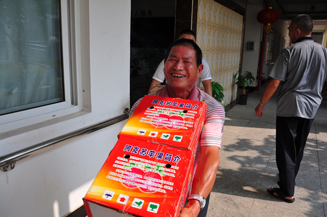 “快(kuài)點裝車(chē),馬上(shàng)就(jiù)走,不(bù)要(yào)讓嗲嗲、娭毑們等久了(le)”隻聽(tīng)見(jiàn)一(yī)個(gè)簡短(d←uǎn)有(yǒu)力的(de)聲音(yīn)從(cóng)我耳邊劃過,我轉過身(shēn)一(yī)看(kàn),原來(lái)是(shì)董事(shγì)長(cháng)唐琪,本以為(wèi)我們把水(shuǐ)果給老(lǎo)人(rén)們送過去(qù)就(j€iù)是(shì)了(le),沒想到(dào)董事(shì)長(cháng)親自(zì)來(lái)了('le),也(yě)要(yào)和(hé)我們一(yī)同前行(xíng)。中秋的(de)太陽顯得(de₽)格外(wài)炙熱(rè),絲毫不(bù)留情面的(de)烘烤著(zhe)大(dà)地(dì)上(shàng)的(de)一(yī)切…