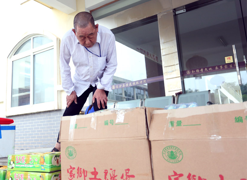 今天,綠(lǜ)葉水(shuǐ)果的(de)家(jiā)人(rén)在董事(shì)長(cháng)唐琪先生(shēng)的(de)帶領下(xià)再一(yī)次來(l≠ái)到(dào)了(le)長(cháng)沙縣黃(huáng)花(huā)敬老(lǎo)院,為(wèi)這(zhè)裡(lǐ)的(φde)爺爺奶奶送上(shàng)了(le)節日(rì)的(de)慰問(wèn),為(wèi)他(tā)們帶來(lái)了(le)過節少(shǎo)不(bù)了(le)的(γde)鹹鴨蛋、皮蛋,還(hái)有(yǒu)吐魯番的(de)西(xī)州蜜瓜,山(shān)東(dōng)蘋果,水(shuǐ)蜜桃,進口香蕉和(hé)東(dōng)方蜜瓜等健康、營養的(de)水(shuǐ)果。