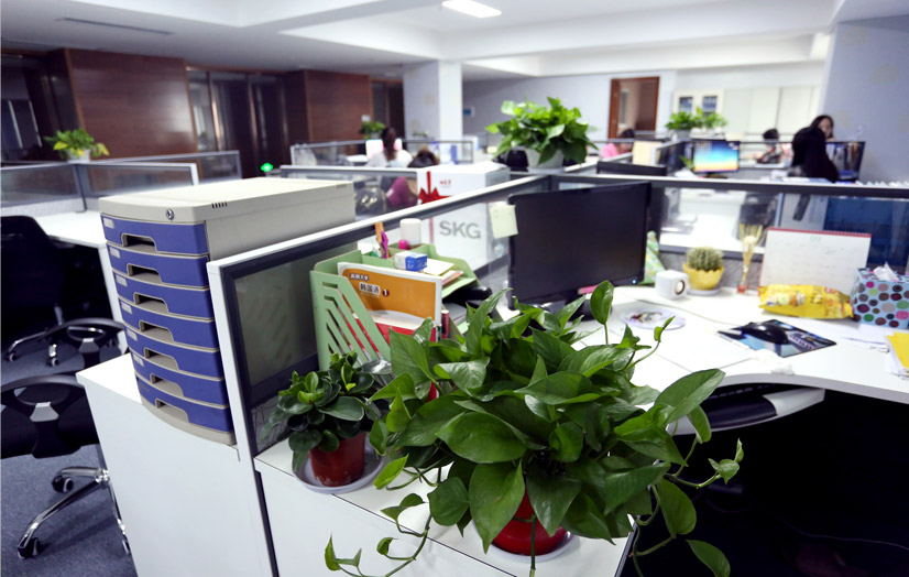 四人(rén)小(xiǎo)隔辦公桌,花(huā)草(cǎo)環繞,空(kōng)氣清新,既有(yǒu)員(yuán)工(gōng)自(zì)己的(de)獨立施展空(kōng)間(j€iān),又(yòu)能(néng)促進團隊合作(zuò)。