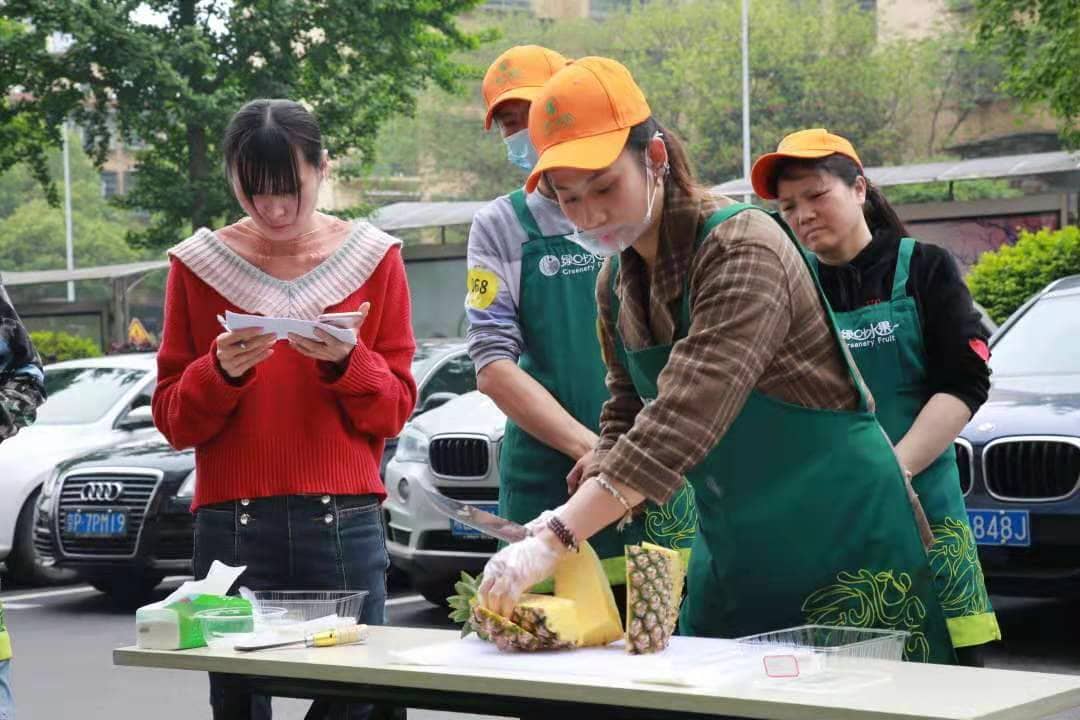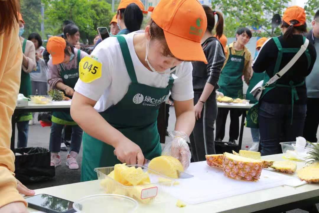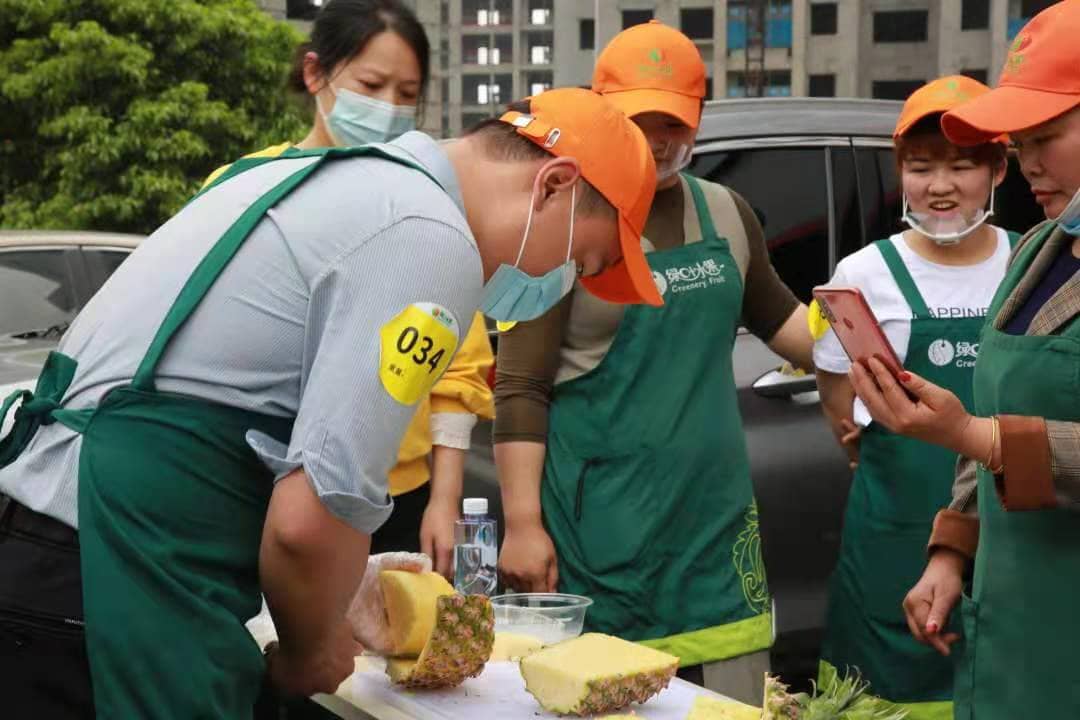 今日(rì),各區(qū)域鳳梨果切高(gāo)手齊聚公司總部樓下(xià),為(wèi)大(dà)家→(jiā)帶來(lái)精彩的(de)鳳梨果切技(jì)藝展現(xiàn),連綿多(duō)雨(yǔ)的(de)天氣也(yě)被我們的(de•)熱(rè)情所感染,一(yī)掃陰霾,迎來(lái)了(le)難得(de)的(de)大(dà)晴天。