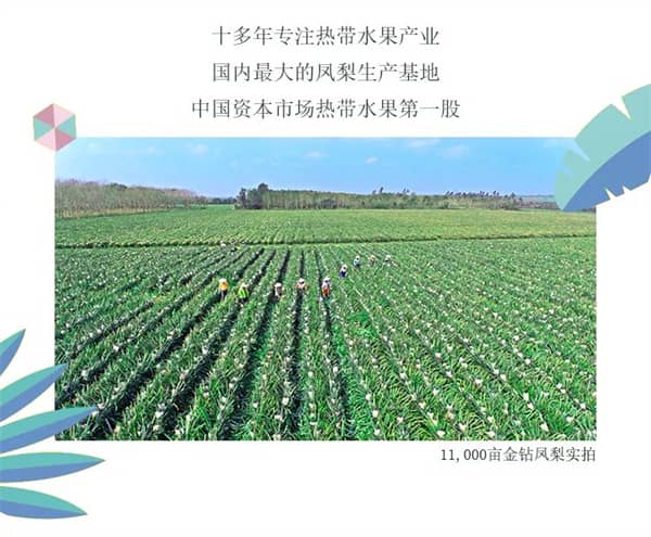 海(hǎi)南(nán)天地(dì)人(rén)生(shēng)态股份有(yǒu)限公司,始創于2001年(nián),紮根海(hǎi)π南(nán),專注熱(rè)帶水(shuǐ)果産業(yè)近(jìn)二十年(nián),擁有(yǒu)全國(guó)最大(dà)的(de)金(jīn)鑽鳳梨種植基地(dì±)達11,000畝,是(shì)全國(guó)高(gāo)端鳳梨産業(yè)的(de)領導品牌,也(yě)是(shì)中國(guó)資本市(shì)場"(chǎng)熱(rè)帶水(shuǐ)果第一(yī)股。天地(dì)人(rén)堅持綠(lǜ)色、有(yǒu)機(jī)的(de)理(lǐ)念做(zuò)金(jīn)鑽鳳梨種植、做(z✘uò)熱(rè)帶農(nóng)業(yè)種植。他(tā)們建立了(le)種植農(nóng)業(yè)信息系統化(huà)管理(lǐ)體(tǐ)系,就£(jiù)是(shì)為(wèi)了(le)能(néng)夠給人(rén)們提供綠(lǜ)色、安全、健康的(de)熱(rè)帶水(®shuǐ)果。