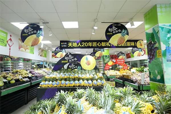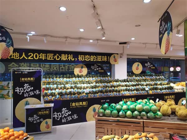 現(xiàn)場(chǎng)擺滿了(le)鳳梨,幾乎占了(le)門(mén)店(diàn)陳列的(de)一(yī)半