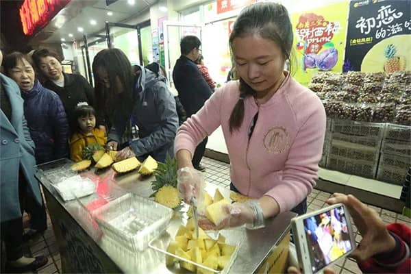 活動還(hái)未開(kāi)始,現(xiàn)場(chǎng)便熱(rè)鬧非凡,擠滿了(le)等待活動開(kāi)始的(de)葉子(zǐ)們。新鮮美(m¥ěi)味的(de)鳳梨散發著(zhe)濃郁的(de)果香,引得(de)大(dà)家(jiā)紛紛品嘗起來(lái),更有(yǒu)許多(duō)葉子(zǐ)等不(bù)及品鑒會(huì)開(kāi₽)始便購(gòu)買起鳳梨了(le)。