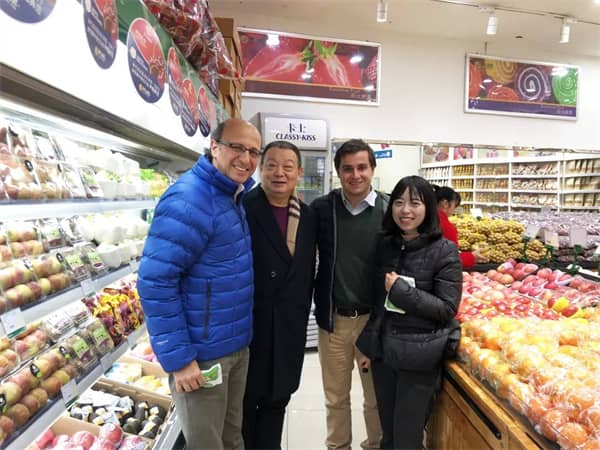 當天, Fernando先生(shēng)一(yī)行(xíng)在唐總、陳總的(de)陪同下(xià)參觀₹了(le)綠(lǜ)葉水(shuǐ)果長(cháng)沙區(qū)域部分(fēn)門(mén)店(diàn),全方™位了(le)解了(le)本季水(shuǐ)果的(de)銷售和(hé)推廣情況,同時(shí)雙方就(jφiù)合作(zuò)事(shì)宜進行(xíng)了(le)深入的(de)交流和(hé)探討(tǎo)。