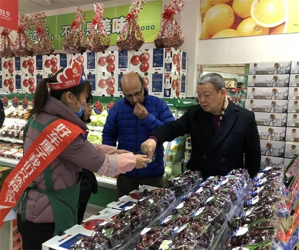 1月(yuè)20日(rì),智利David Del Curto公司CEO Fernando先生(shēng)、銷售Daniel先生(shēng)莅臨綠(lǜ)葉水(shuǐ)果進行(σxíng)觀摩交流,考察期間(jiān),綠(lǜ)葉水(shuǐ)果總經理(lǐ)唐紅(hóng)先生(↑shēng)、營運總監陳光(guāng)輝先生(shēng)全程陪同。
