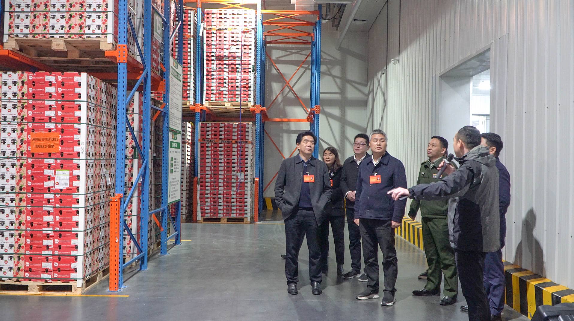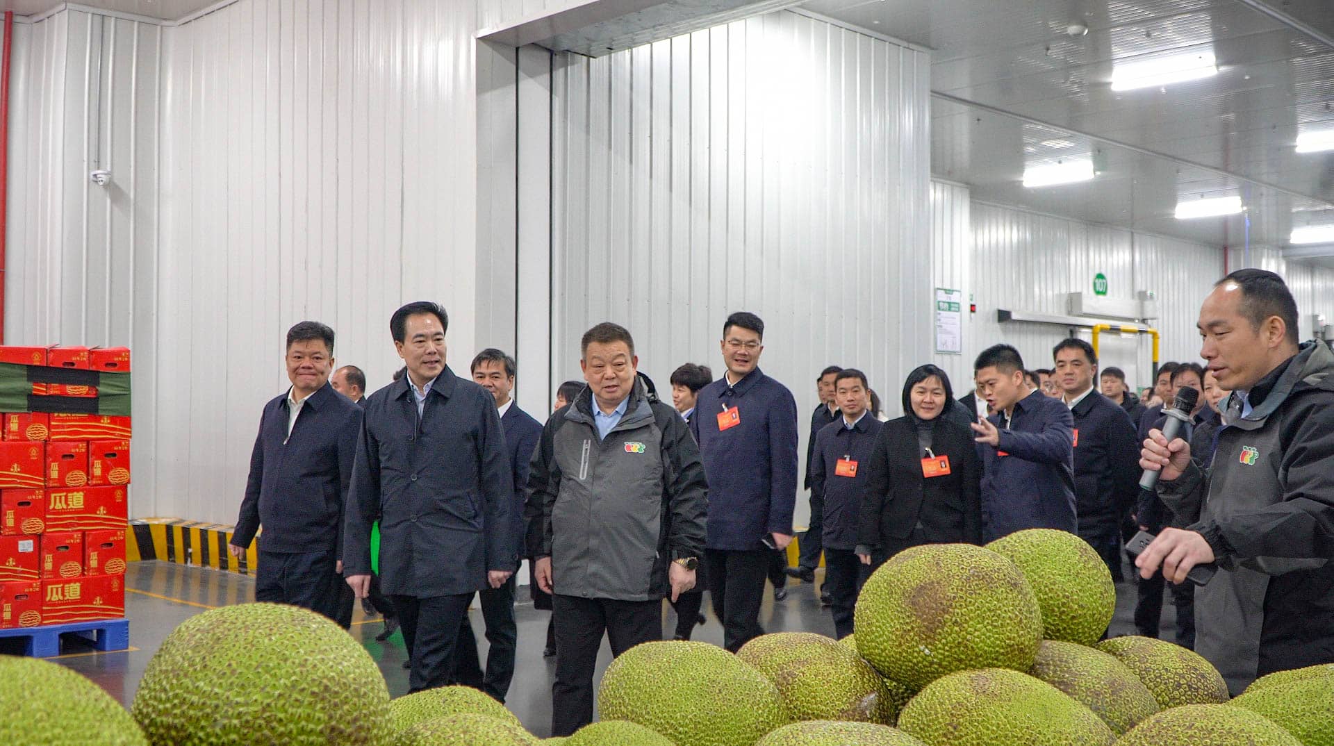 1月(yuè)15日(rì),甯鄉(xiāng)市(shì)委書(shū)記張作(zuò)林(lín),甯鄉(xiāng)經開(kāi)區(qū)黨工(gōng)委副書(shū)記、管委會(huì)主任張毅,市(shì)委副書(shū)記、市(shì)長(cháng)黃(huáng)滔等一(yī)行(xíng)共8₽00多(duō)人(rén)考察團莅臨綠(lǜ)葉水(shuǐ)果智能(néng)物(wù)流園參觀考察,綠(lǜ)葉水(αshuǐ)果總經理(lǐ)唐紅(hóng)陪同接待。
