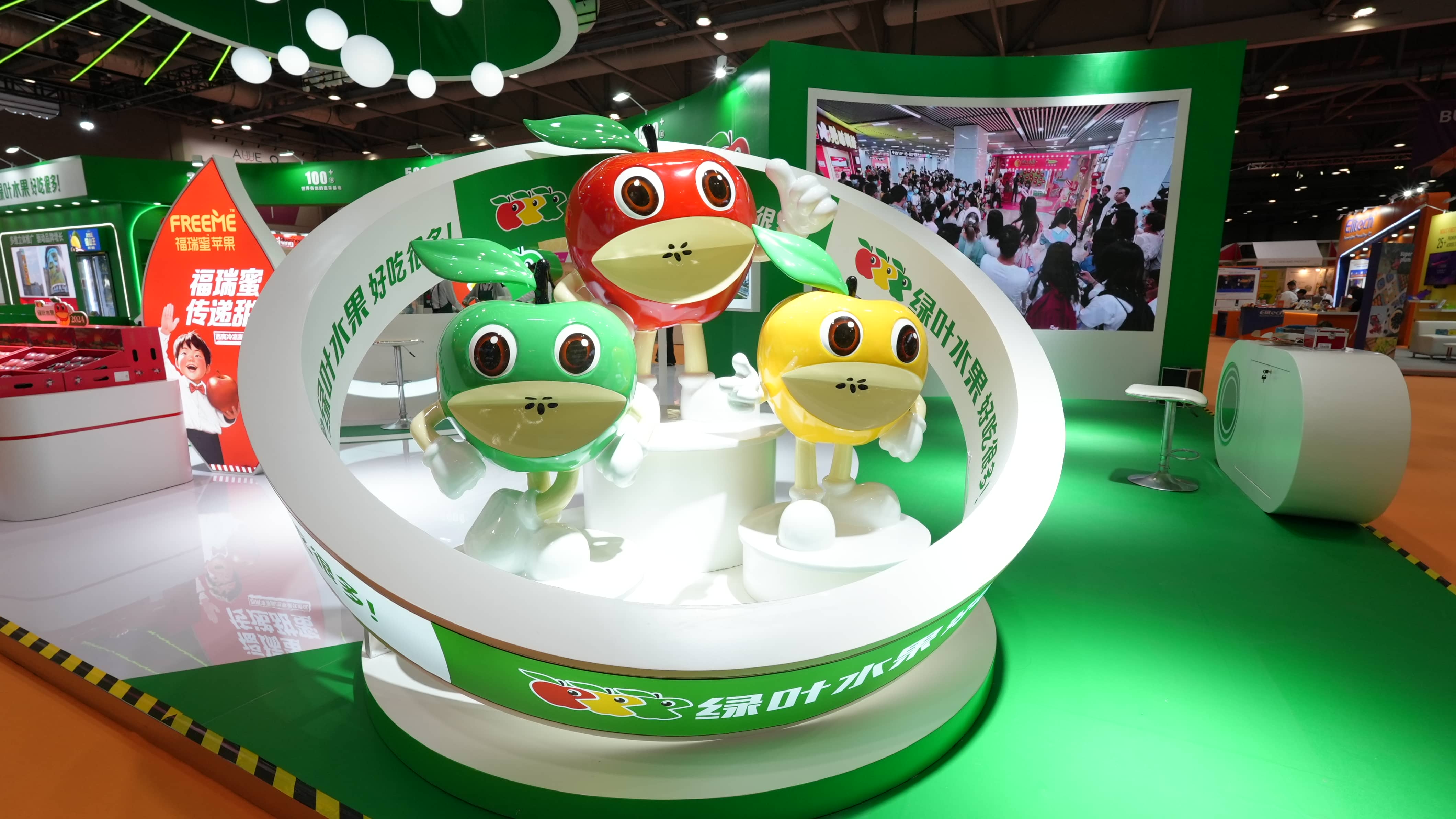 在本次展會(huì)中,綠(lǜ)葉水(shuǐ)果除了(le)展示明(míng)星産品,還(hái₽)将全新IP形象帶到(dào)了(le)展會(huì)現(xiàn)場(chǎng),可(kě)愛(ài)的(de)形象,萌趣的(de)造型,引發衆多(φduō)參展觀衆駐足打卡。