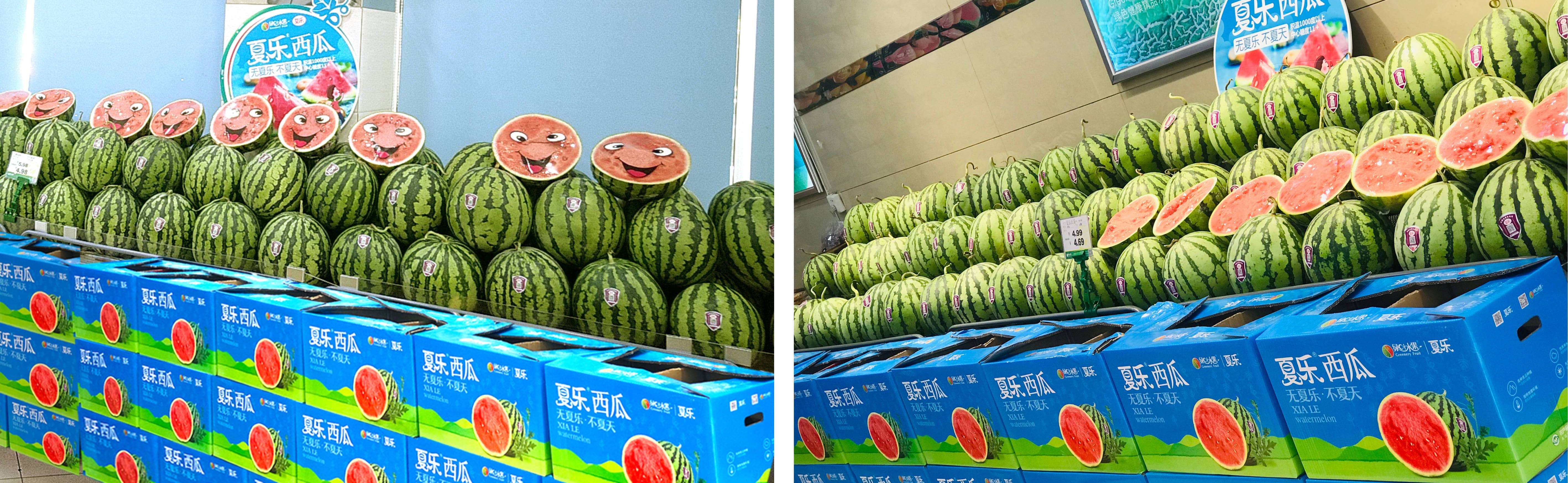 夏樂(yuè)西(xī)瓜是(shì)山(shān)西(xī)省著名商标,外(wài)觀新鮮亮(liàng)麗(lì),口感脆甜酥爽,品質優良穩定,市(shì)場(chǎnσg)供不(bù)應求,是(shì)廣大(dà)農(nóng)民(mín)勤勞緻富的(de)金(jīn)字招牌,被國(guó)家(jiā)農(nóng)業(yè)部登記為(wèi)“地(dì¶)理(lǐ)标志(zhì)保護産品”,又(yòu)被認證為(wèi)“綠(lǜ)色食品”。每個(gè)“夏樂(yuè)”西(xī)瓜都(dōu)有(yǒu)屬于自(zì)己的¥(de)身(shēn)份證,所有(yǒu)瓜農(nóng)在入會(huì)的(de)時(shí)候都(dōγu)會(huì)發放(fàng)自(zì)己的(de)二維碼商标,嚴格按照(zhào)标準種瓜選瓜,頭茬瓜45天摘瓜上(shàng)市(shì),不(bù)允許一(yī)☆顆生(shēng)瓜流入市(shì)場(chǎng)砸了(le)自(zì)己賴以生(shēng)存的(de)誠信口碑,客戶再也(yě)不(bù)用(yòng)去(qù)切開("kāi)确認熟不(bù)熟,哪個(gè)瓜農(nóng)的(de)西(xī)瓜出現(xiàn)了(le)問(wèn)題,手機(jī)掃一(yī)✔掃一(yī)目了(le)然,客戶可(kě)直接進行(xíng)索賠。